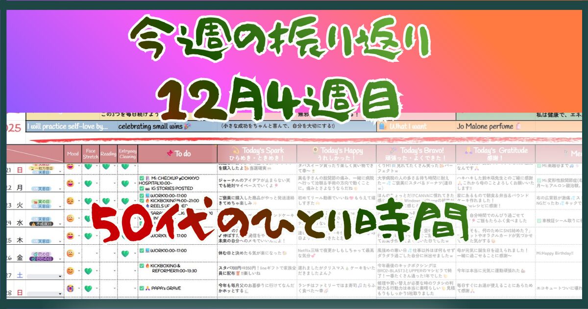 👉【今週の振り返り|12月3週目】 50代、無理しないと決めた1週間|SNS迷子と自分のペース