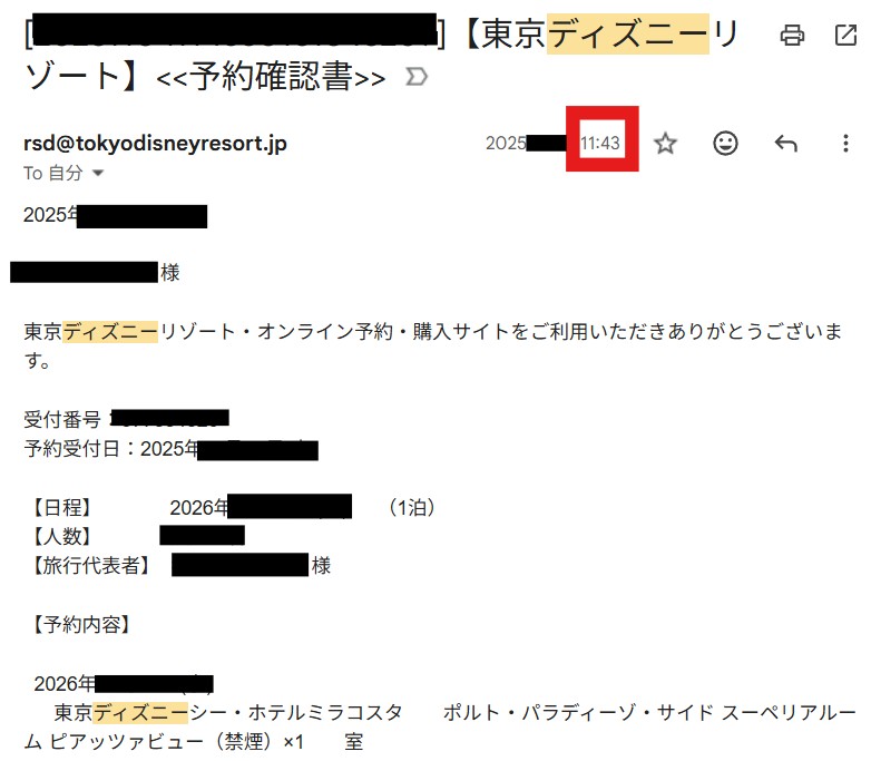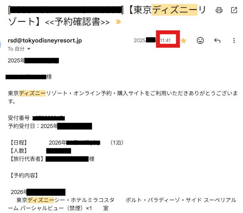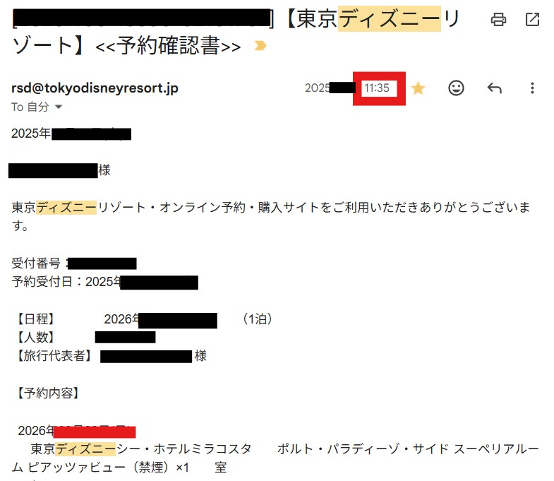 予約確定メールの時間を見ると…